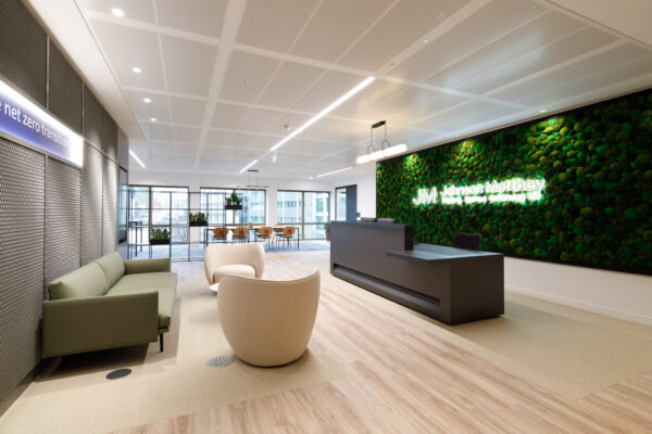 The final interiors fully embody Johnson Matthey’s identity; a workplace that is vibrant, warm and human-centered, and that reflects the organisation’s commitment to innovation, well being and sustainability.