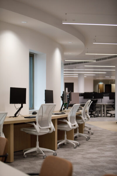 Sustainable thinking also shaped planning and specification choices. Spaces have been designed to maximise natural light, reduce reliance on artificial lighting and support the health and comfort of the people using the space.