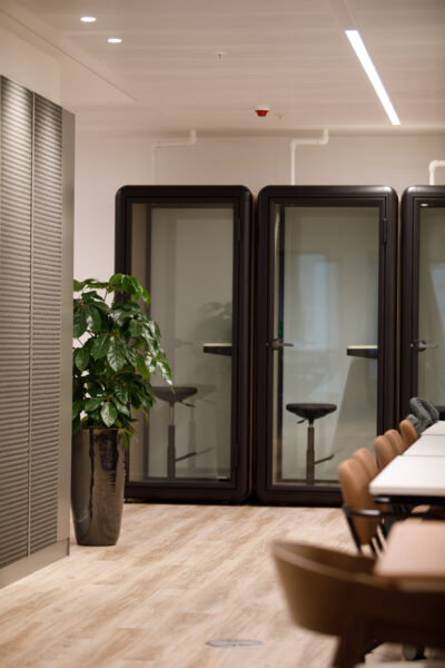 • Focus rooms provide quiet, uninterrupted space, while open collaboration areas cater to project work and shared problem-solving.