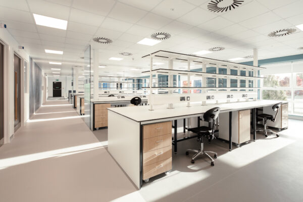 In the early stages of the project, stakeholder engagement played a crucial role in forming the design approach. Workshops and discussions were held to understand the end-users’ requirements for both lab and office workflows, ensuring that operational needs were clearly defined. Particular attention was given to neurodiversity considerations, promoting an inclusive and supportive environment. This collaborative process proved highly beneficial in coordinating design decisions with other consultants, maintaining efficient workflows, and preserving the functionality of the lab spaces.