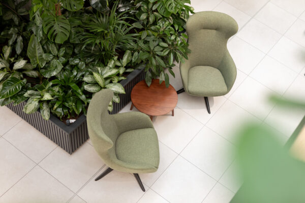 Landscaping in the wintergarden and planting in the interiors were similarly used help to soften the environment, boosting the warm natural feel and shaping more intimate areas within the larger volume. Furniture and finishes were also carefully selected, using materials rich in texture and warm in colour.