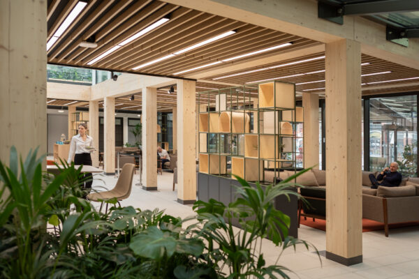 The retrofit of the Central Building was intentionally light touch, with a clear focus on reusing what was already available. Panels were resprayed, partitions were reused, and all foundations and structure were retained – delivering significant carbon savings.